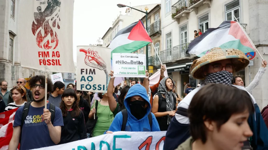 Os estudantes pelo fim ao fóssil até 2030 manifestam-se entre a Praça José Fontana, em Lisboa, e a Assembleia da República, num percurso de cerca de três quilómetros.