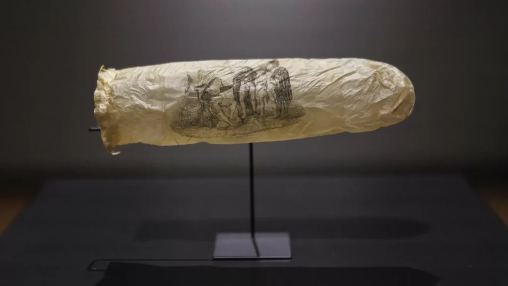 Um preservativo raro, datado de aproximadamente 1830, está chamando a atenção no Rijksmuseum, em Amsterdã. Decorado com uma gravura erótica que retrata uma freira e três clérigos em poses provocantes, o objeto é uma verdadeira relíquia histórica e cultural.